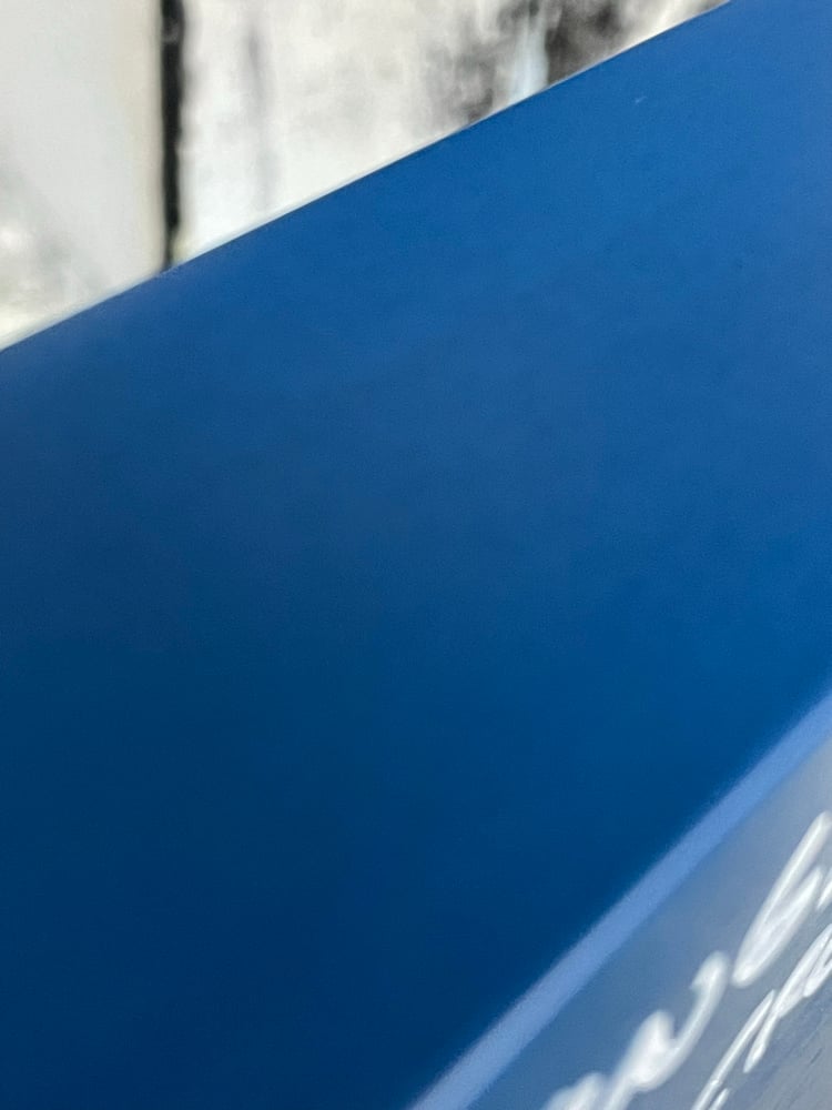 Blue Cardstock and epoxy cured with heat and pressure